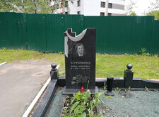 На нижеприведённых фотографиях представлен окончательный вид места захоронения. Мы поставили на место памятник, сделали цветник, уложили внутрь участка гранитную брусчатку. По периметру места захоронения проходит старый цоколь, на этот раз укреплённый на надёжное и добротное основание. В правую половину участка высадили две туи (одну в специальную клумбу, другую в пластиковую кадку), в цветник поместили барвинок. В таком виде объект был представлен клиенту, который остался очень доволен проделанной работой.